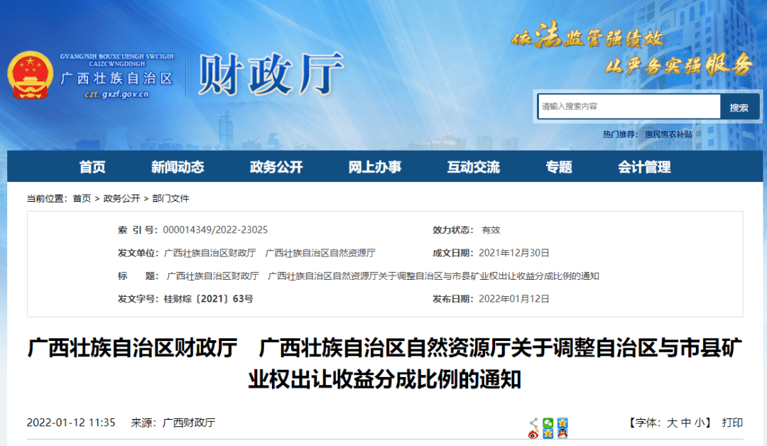 與此同時(shí),廣西壯族自治區(qū)自然資源廳《關(guān)于印發(fā)全面推進(jìn)砂石土類礦產(chǎn)“凈采礦權(quán)”出讓工作的通知》和《關(guān)于調(diào)整自治區(qū)與市縣礦業(yè)權(quán)出讓收益分成比例的通知》。明確廣西壯族自治區(qū)從2022年起全面實(shí)行砂石土類礦產(chǎn)"凈礦"出讓,鼓勵(lì)推進(jìn)其他礦產(chǎn)"凈礦"出讓;礦業(yè)權(quán)出讓收益分成向基層傾斜,自治區(qū)本級(jí)分成比例調(diào)減10%以上。