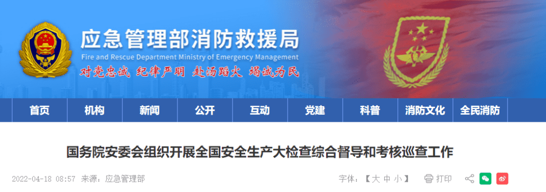 根據(jù)黨中央、國務院決策部署和全國安全生產(chǎn)大檢查工作安排,自4月中旬至6月底,國務院安委會組織16個綜合檢查組,對31個?。ㄗ灾螀^(qū)、直轄市)和新疆生產(chǎn)建設兵團安全生產(chǎn)大檢查情況進行綜合督導,并同步開展國務院2021年度省級政府安全生產(chǎn)和消防工作考核巡查及國務院安委會成員單位安全生產(chǎn)工作考核。